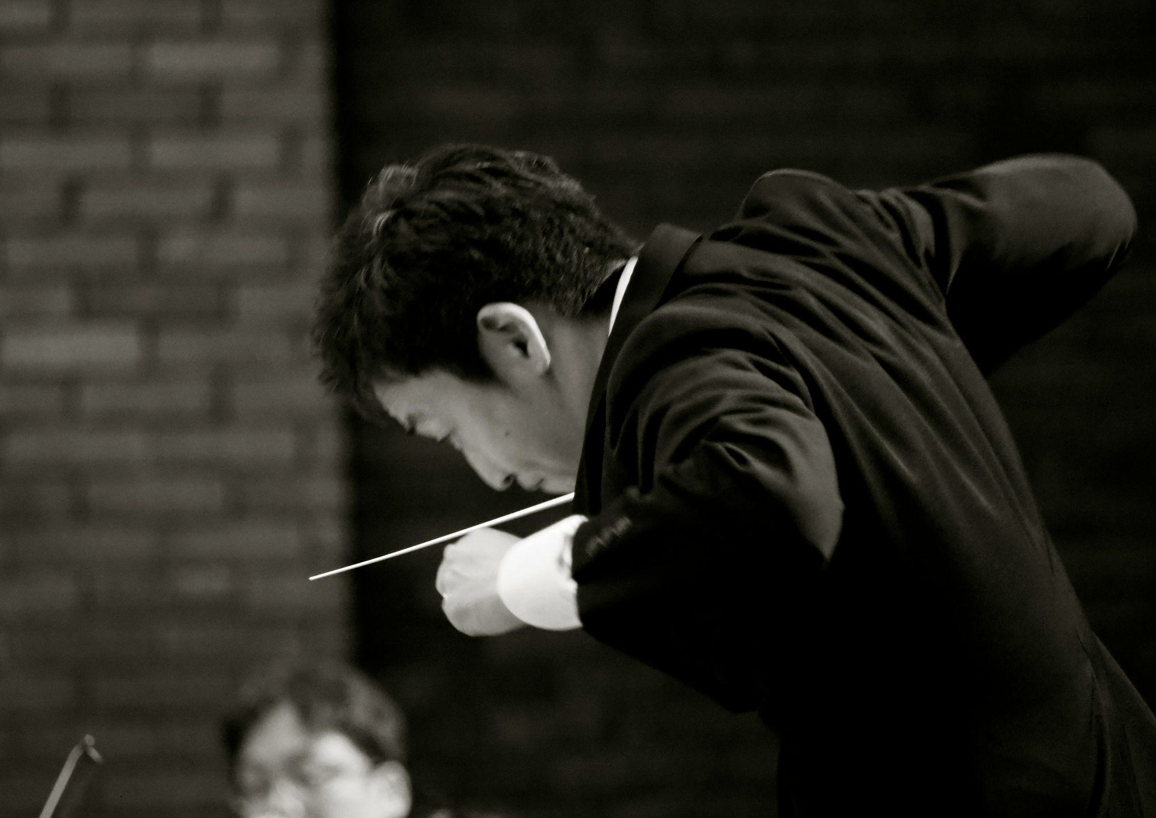 Fingers delicately adjust the violin’s volume with the slightest gesture. One raised eyebrow cues the timpani’s entrance. Two white-gloved hands sculpt the pace and emotion of each phrase.